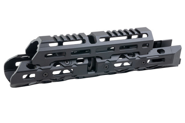 The 1U020B handguard is an modernisation upgrade for Tokyo Marui AKM GBB rifles, providing owners with the option of adding personal effect onto the handguard, namely peripheral accessories. Precisioned machined with aluminium, the handguard features an aggressive structural profile, with weight saving angular cut outs to reduce the overall weight of the rifles when adding this modular upgrade. The handguard features Picatinny and M-LOK rail interface, providing modular accessory options for the shooter to add on and personalise their AK, with a unique twist of dual layer M-LOK available on the sides of the handguard. The handguard has a simple installation process, able to retain the original cleaning rod stowage point for the AKM platform.