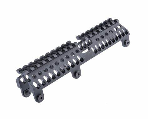 The 5KU aluminium B-31 upper rail handguard for airsoft AKs offers picatinny rail compatibility to guns that otherwise will not have it. The handguard is designed to fit both electric and gas airsoft guns.