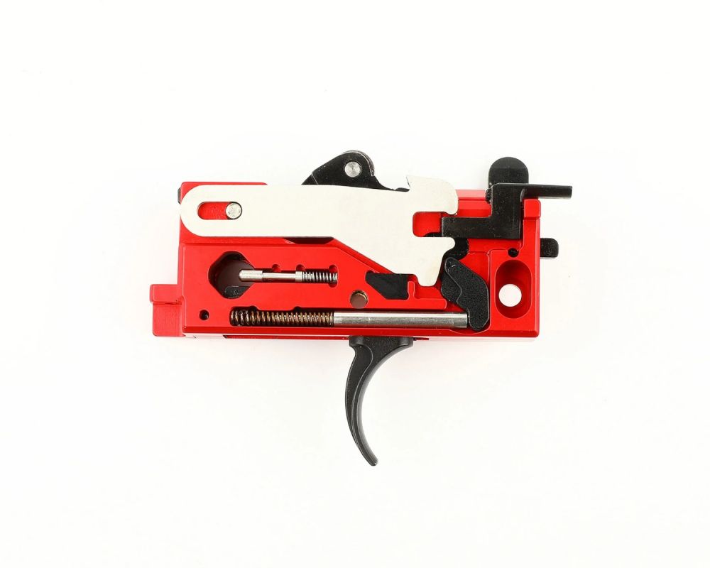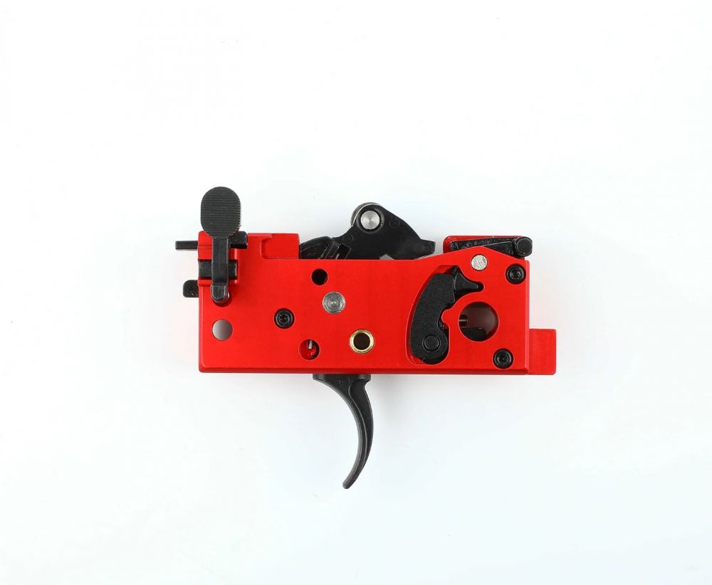 - CNC aluminium trigger box with steel internal components for durability and crisp operation