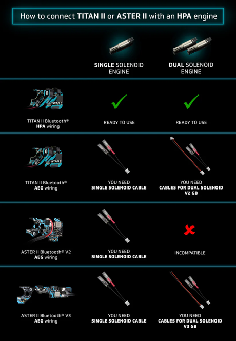 GATE Cables for Dual Solenoid HPA for TITAN II with AEG Wiring