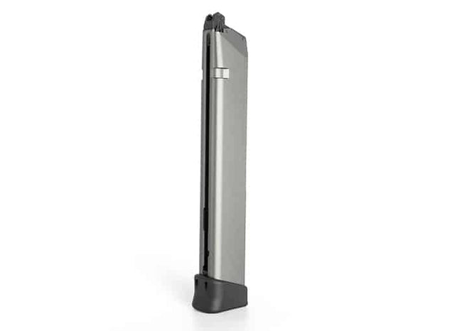 This 50-round G-Series Airsoft magazine by TTI Airsoft is designed for the VFC / Tokyo Marui / WE G-Series, Action Army AAP01 Series, & TP22 Airsoft pistols. Its CNC aluminium construction makes it incredibly lightweight for its size.