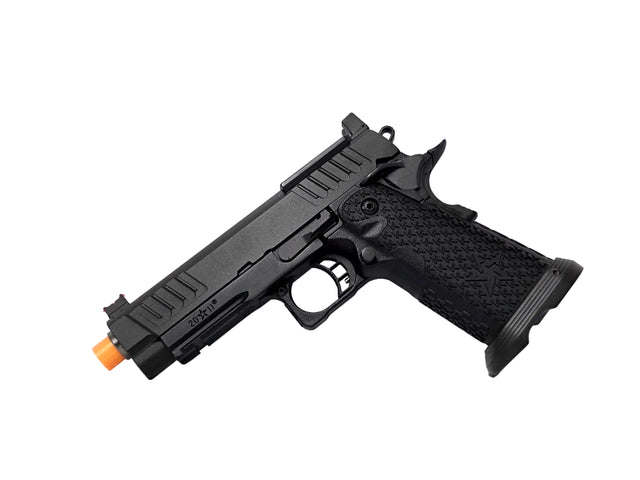 STACCATO 2011 P double-row pistol replica is based on the 2011 platform, now available from EMG. EMG aimed to introduce a product to the market that would meet the needs of customers looking for a reliable, precise, and durable combat pistol. A pistol that offers long-range, easy operation for left-handed individuals, as well as a beautiful appearance with attention to detail and precision.