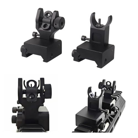 Tactical Flip Up Iron Sights Front and Rear Sight Mounts Set - Black