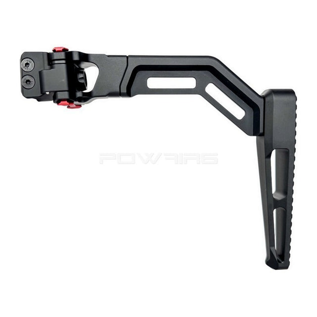 Foldable stock made from precisely CNC-machined aluminium and stainless steel.