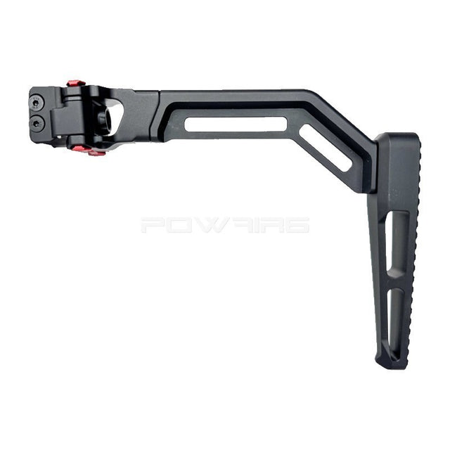 Foldable stock made from precisely CNC-machined aluminium and stainless steel.