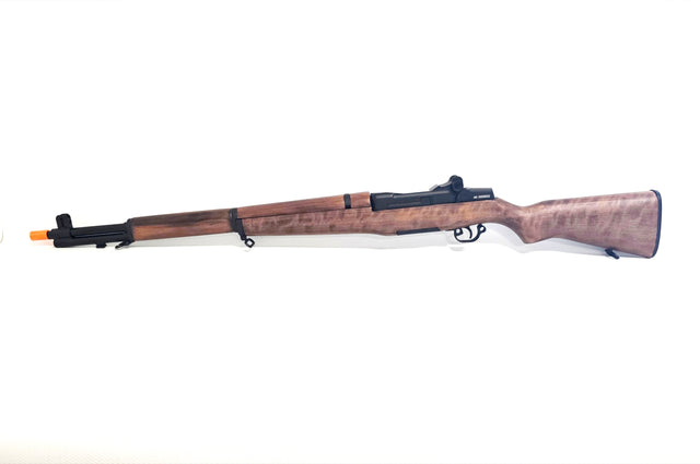 A&Ks M1 Garand is designed for players on the field, but will also draw the attention of re-enactors and collectors wanting to fill closer to this well respected period in history. This AEG platform features a fully stained wooden stock with a metal receiver & barrel. Contained within is a V7 Gearbox providing some room for upgrades in the future if required. The 20R magazine is loaded from the underside just forward of the functioning safety and is held securely in place whilst moving on the field. With accurate furniture such as bayonet lugs and sling points – you will certainly feel like a heroic paratrooper in Normandy, or a fierce marine, island hoping across the Pacific.