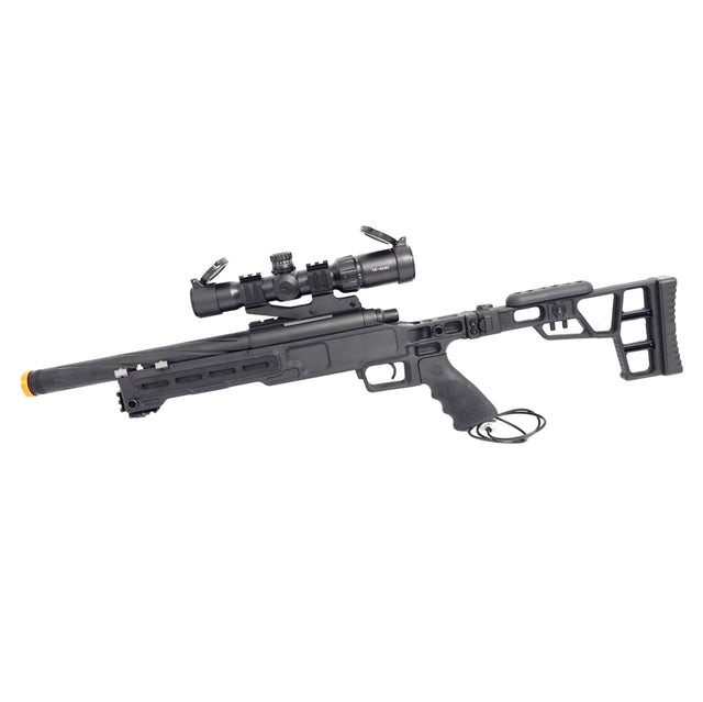 Internally, this sniper has been converted to HPA with a Wolverine Bolt with cylinder. The inner barrel has been swapped out for a Maple Leaf Crazy Jet barrel and the hop rubber has been swapped to Maple Leaf also. Along with this sniper, you will receive a Nuprol essential hard case to store it in.